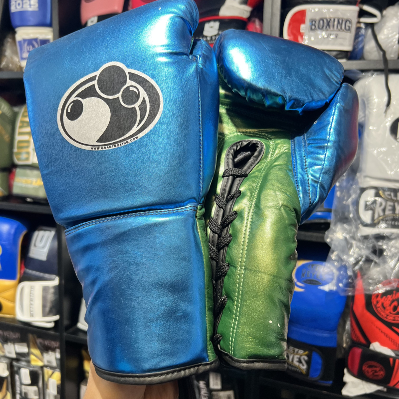 БОКСЕРСКИЕ ПЕРЧАТКИ GRAND НА ШНУРОВКЕ СИНИЙ МЕТАЛЛИК