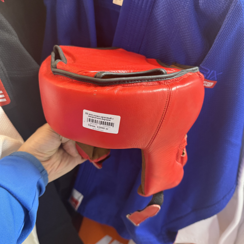 ШЛЕМ КОЖА КРАСНЫЙ С ЗАКРЫТЫМ ВЕРХОМ