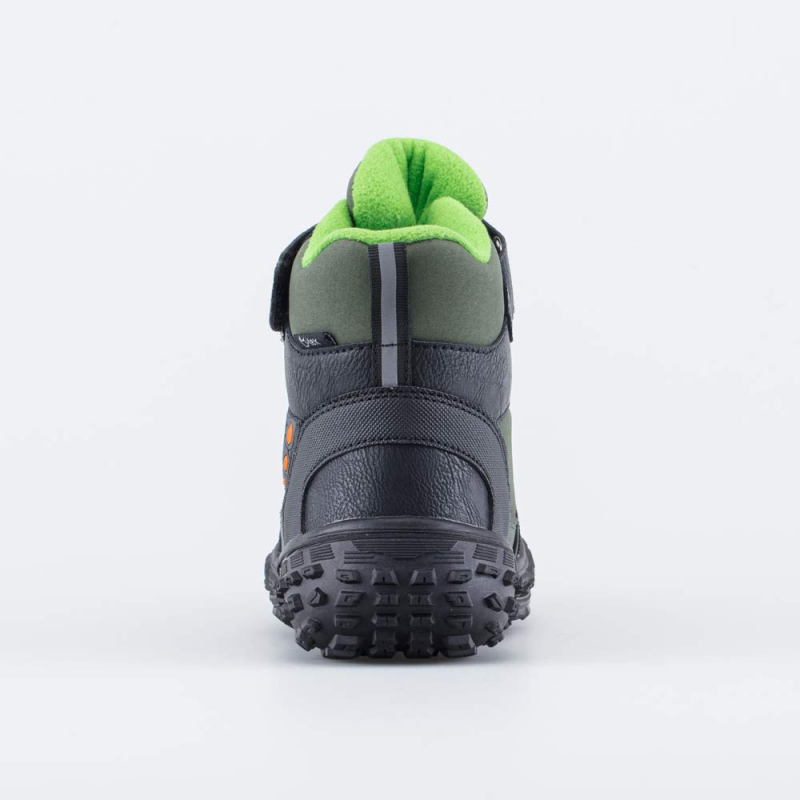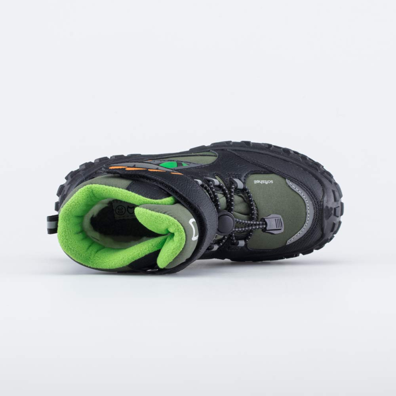 Мембранные ботинки оливково-черного цвета для мальчика-дошкольника выполнены с применением технологии SoftShell.