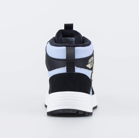 Модная кедовая подошва изготовлена из легкого и амортизирующего полиуретана. Накладка из термополиуретана на ходовой поверхности повышает устойчивость на зимних дорожках.