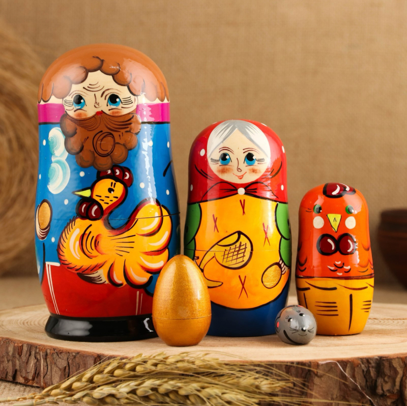 МАТРЁШКА «КУРОЧКА РЯБА», СЮЖЕТНАЯ, 5 КУКОЛЬНАЯ, 13,5 - 15 СМ., МИКС