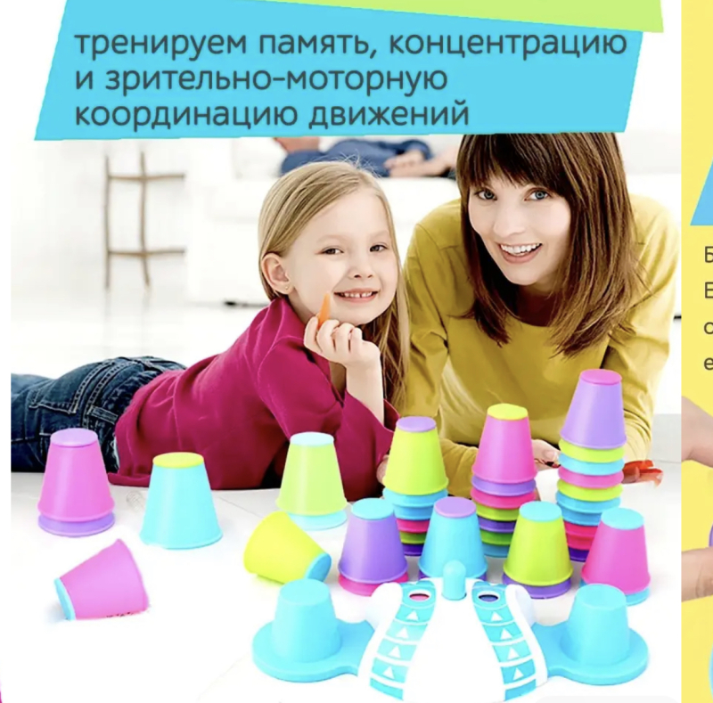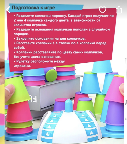 Настольная игра для детей и взрослых КТО БЫСТРЕЕ поставит ЦВЕТНЫЕ КОЛПАЧКИ. Динамичная веселая игра. в ходе которой надо построить башню из цветных стаканчиков, следуя правилам, быстрее других игроков. Игра на время, скоростная игра. В наборе: таймер, 32 цветных стаканчика, рулетка с кнопкой.